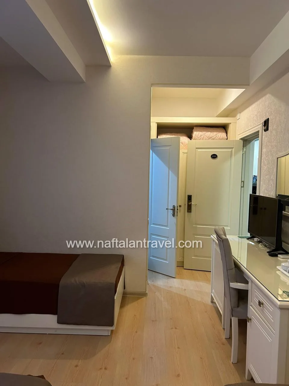 Уютный и компактный стандартный номер в Nafta Hotel SPA Naftalan площадью 20 м² идеально подходит для проживания одного взрослого гостя. Спокойный интерьер, удобная мебель и продуманная планировка создают комфортные условия для отдыха и восстановления.