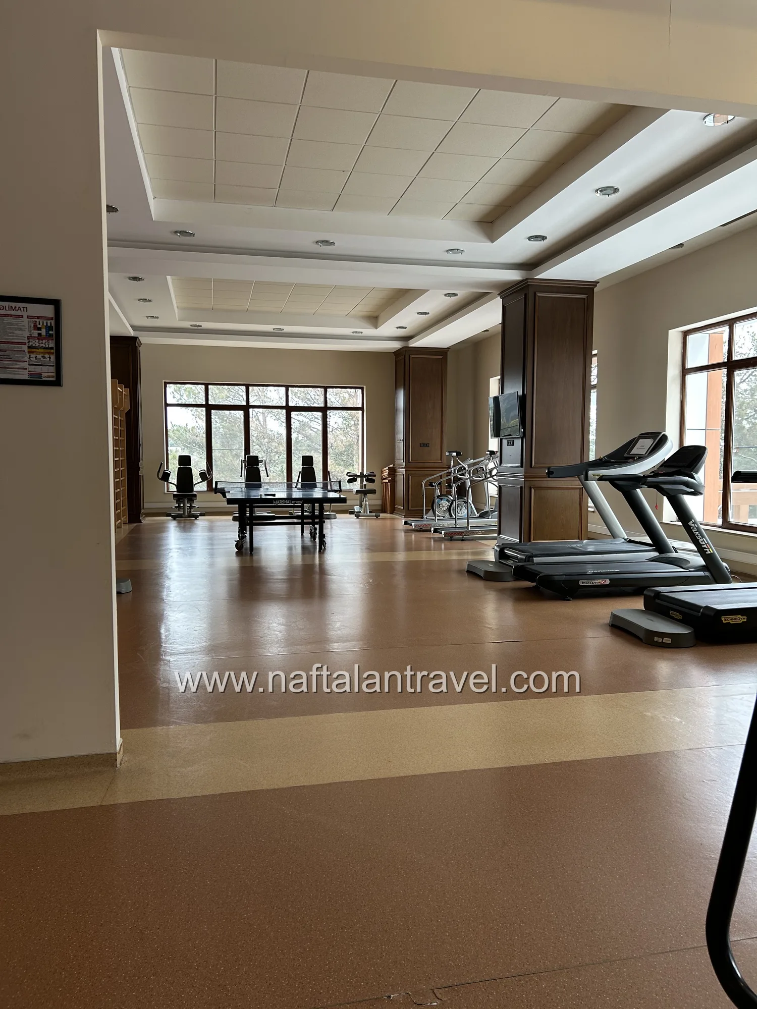 Санаторий расположен в спокойной и зелёной зоне Нафталана. На территории комплекса доступны: