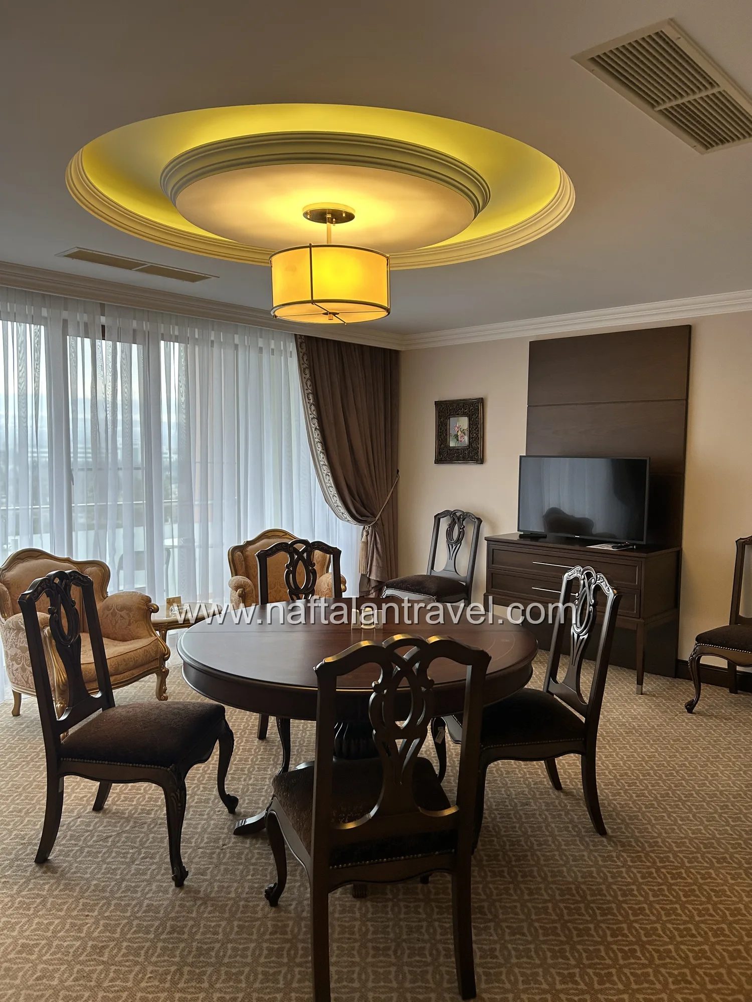 Executive Suite Chinar идеально подходит для семейного отдыха, деловых поездок или длительного пребывания, обеспечивая максимум пространства, уюта и комфорта в санатории Нафталан.