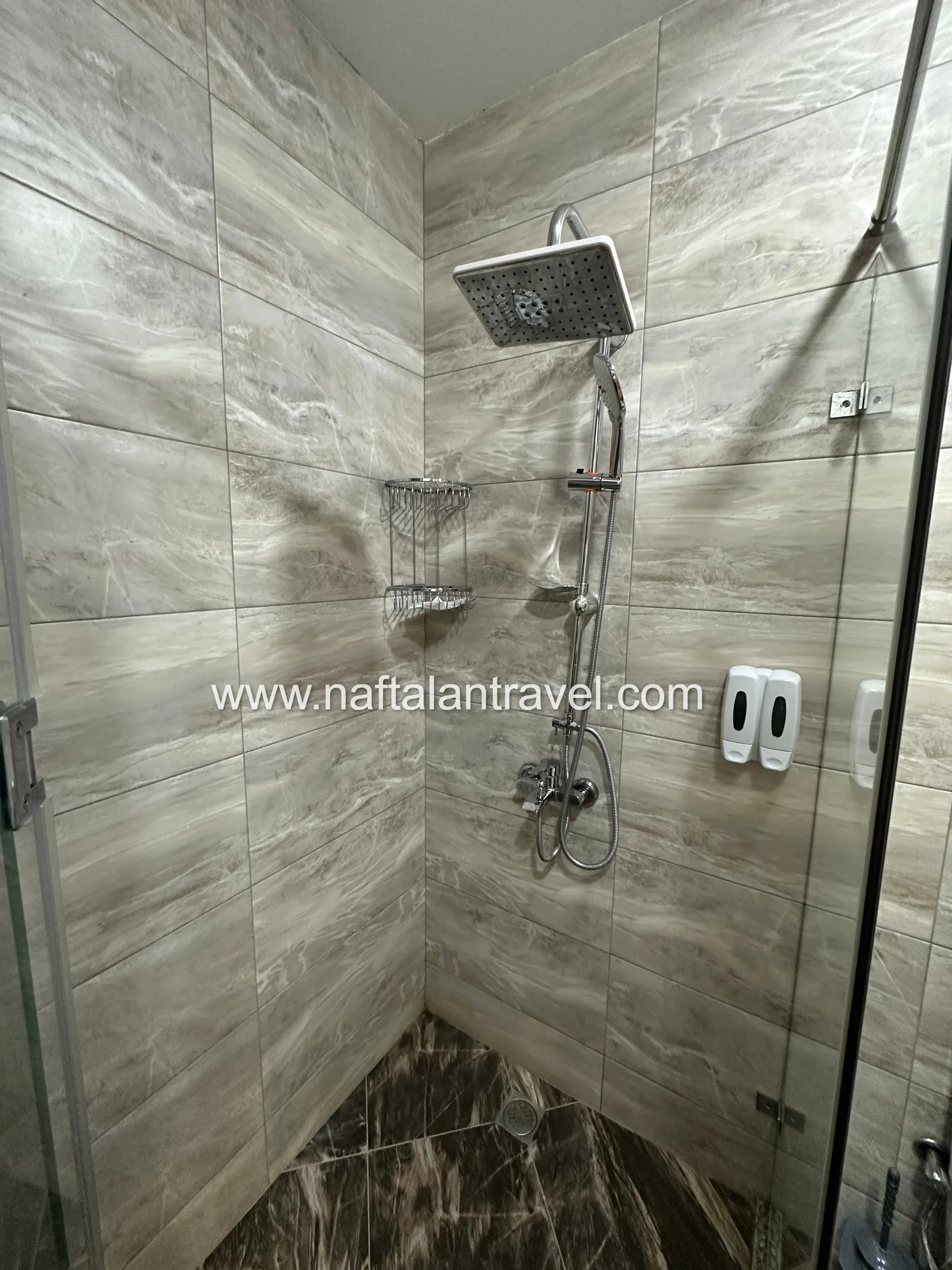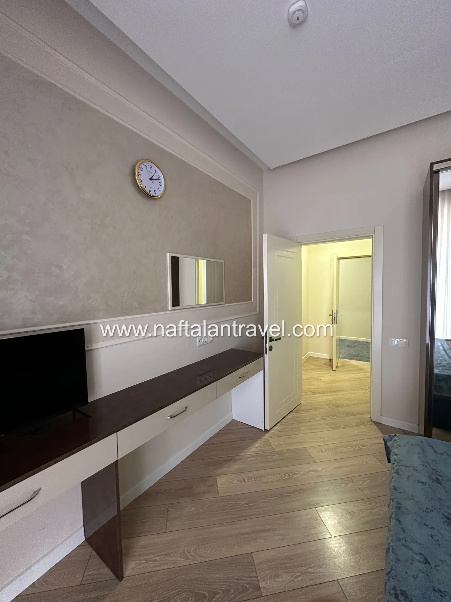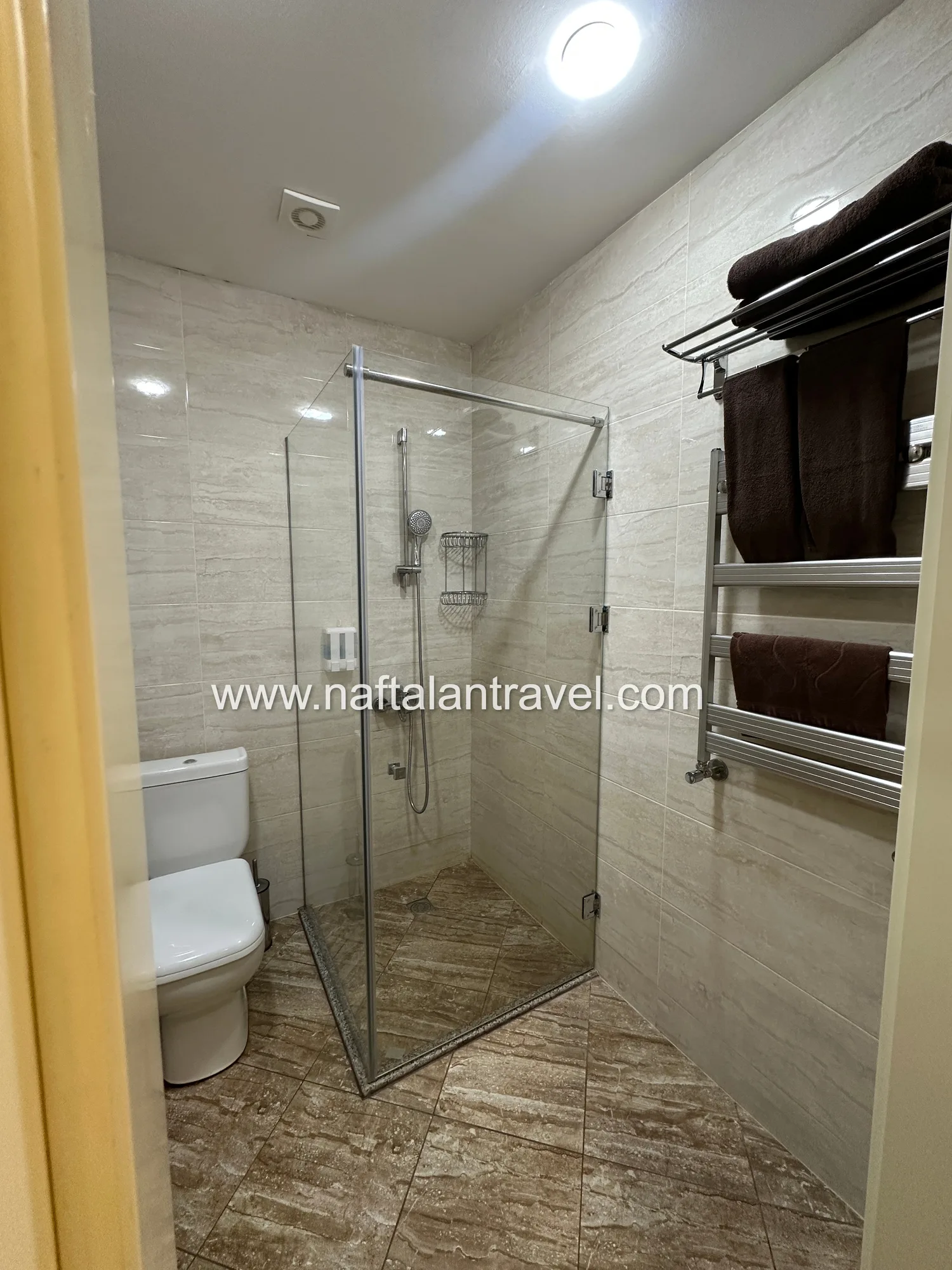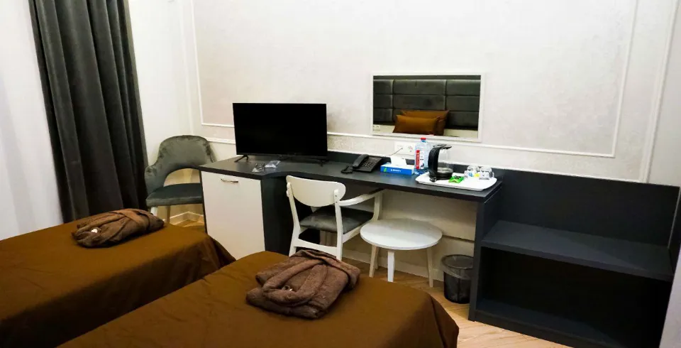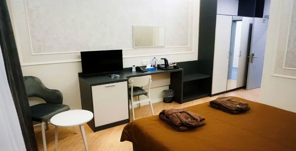 Современный интерьер, спокойные тона и практичная меблировка делают номер идеальным вариантом для отдыха, восстановления и длительного пребывания в оздоровительной атмосфере Нафталана.