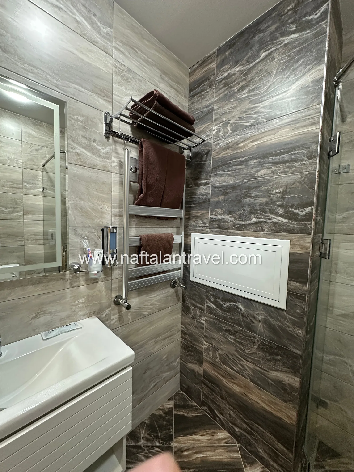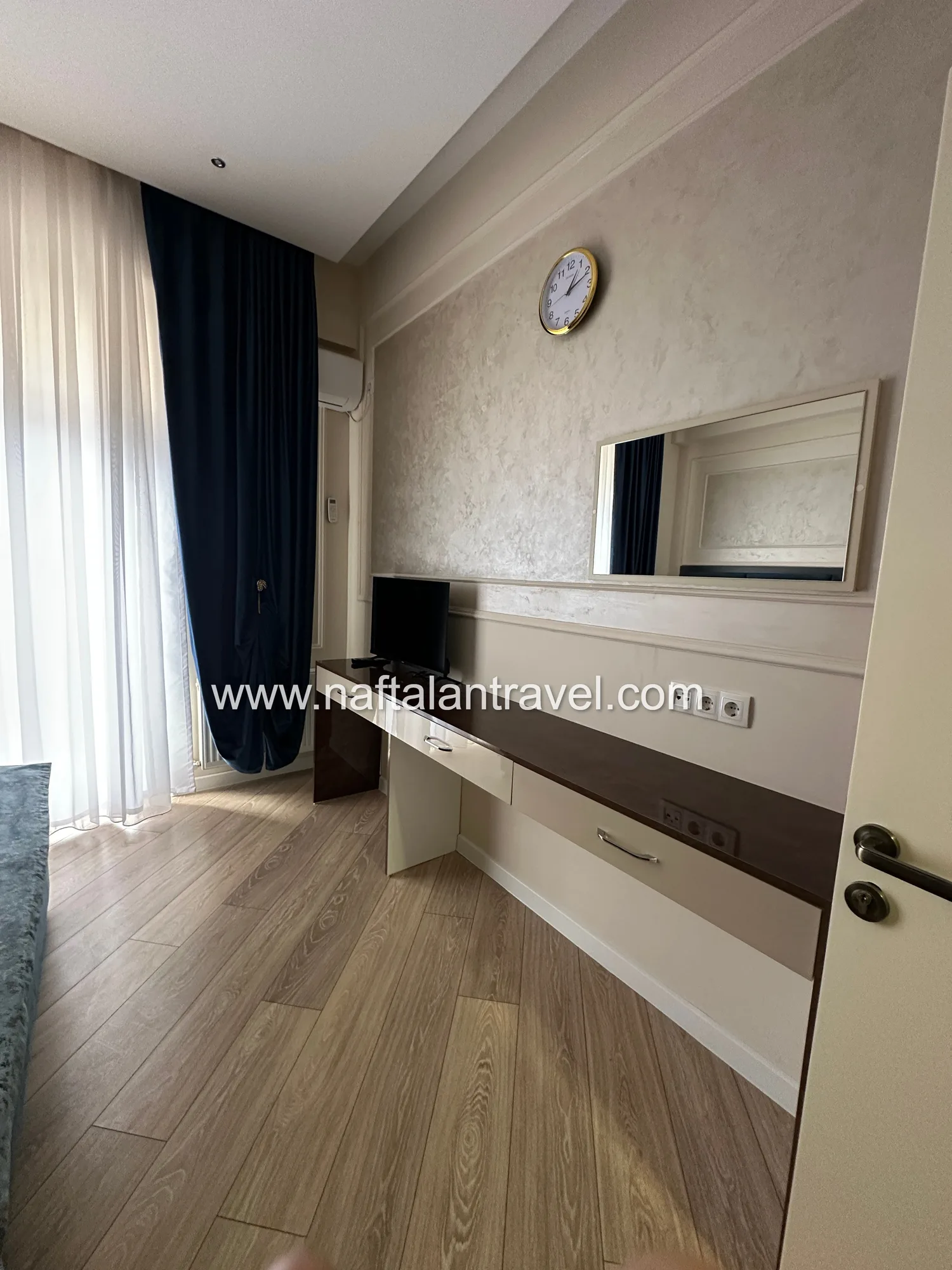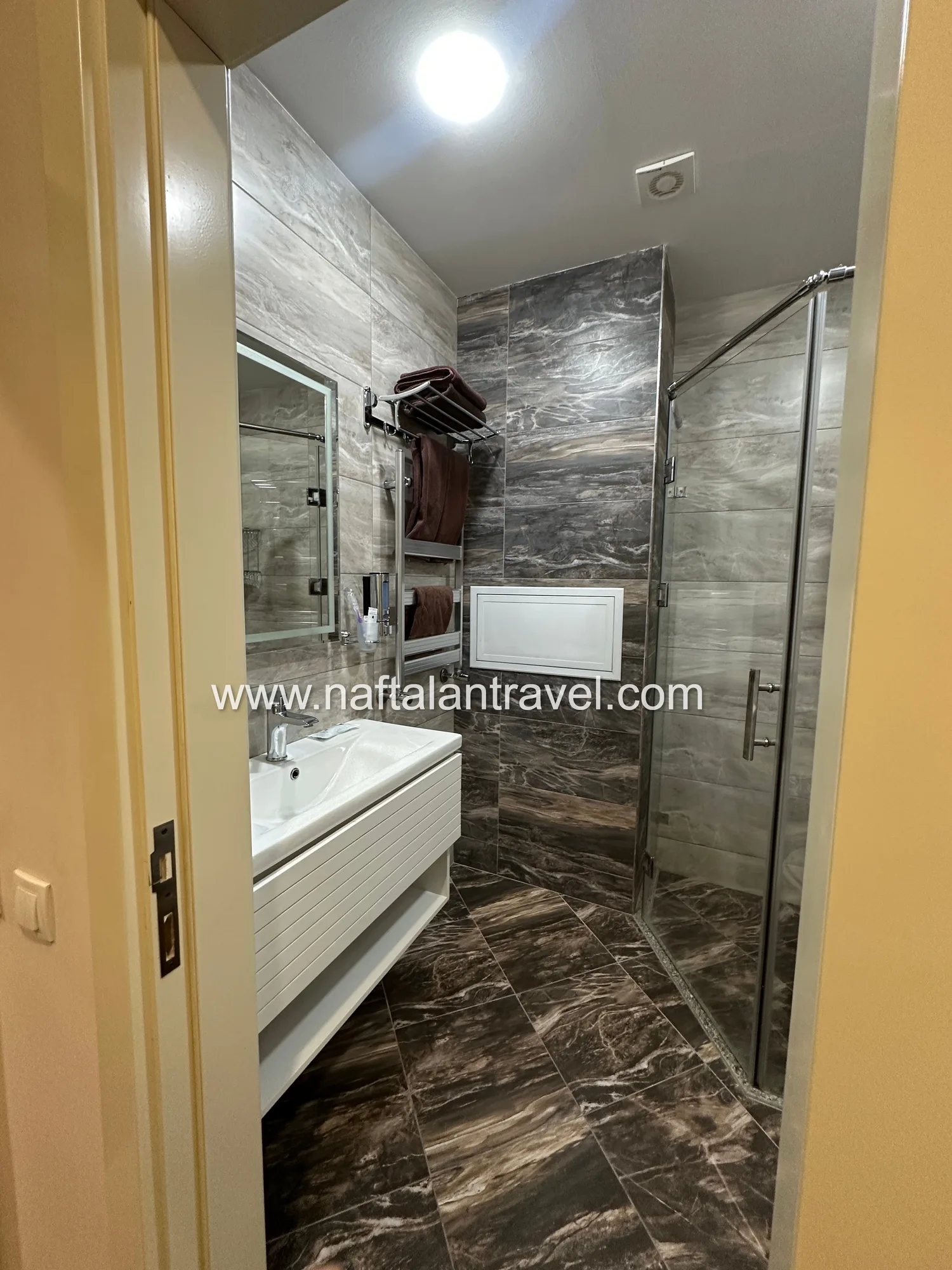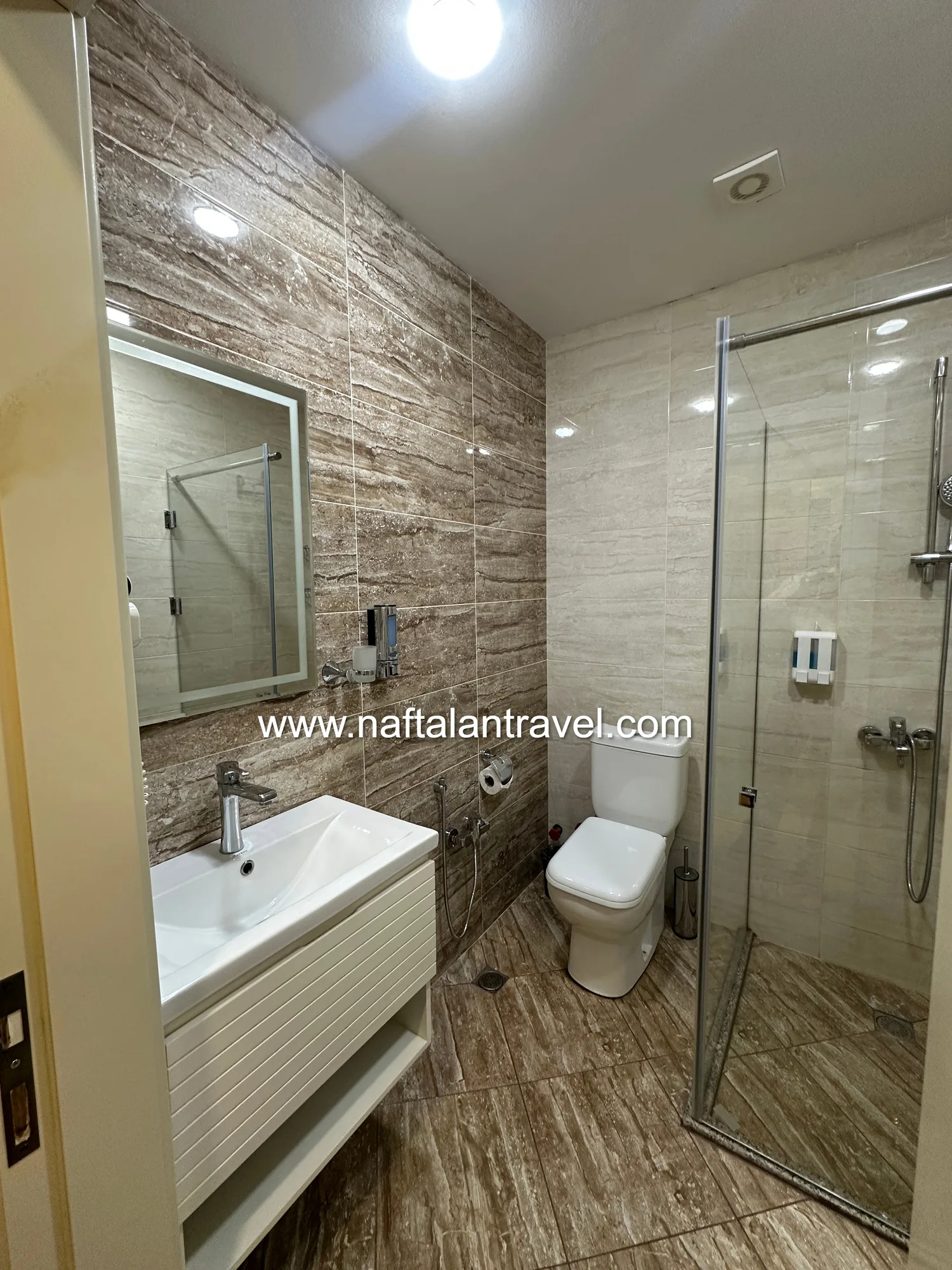 Современный интерьер, спокойные тона и практичная меблировка делают номер идеальным вариантом для отдыха, восстановления и длительного пребывания в оздоровительной атмосфере Нафталана.
