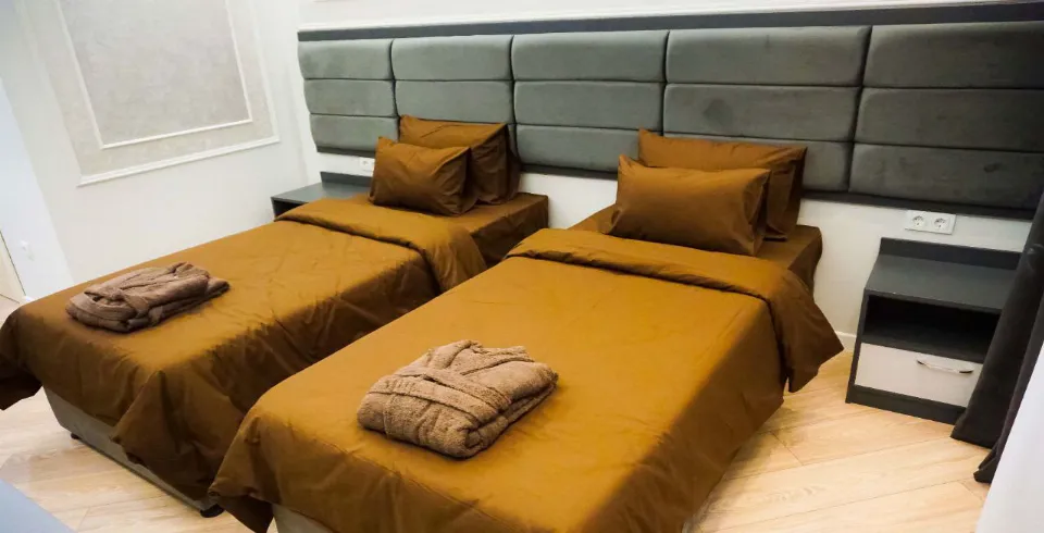 Triple Room в санатории Сан Сити СПА (Sun City) Нафталан — это удобный и функциональный номер, созданный для комфортного размещения семьи или небольшой группы гостей. Площадь 23 м² и продуманная планировка позволяют каждому почувствовать себя уютно и свободно.