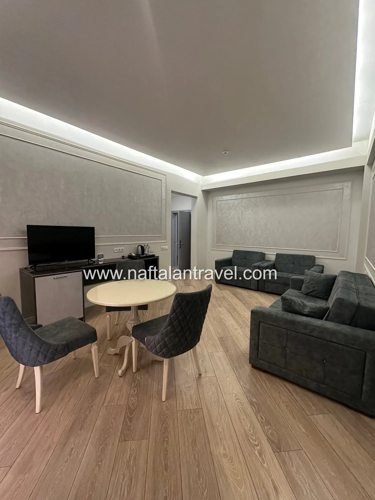 Family Suite — идеальный выбор для семей, которые ценят простор, комфорт и спокойную атмосферу. Номер обеспечивает всё необходимое для полноценного отдыха и оздоровления в Нафталане.
